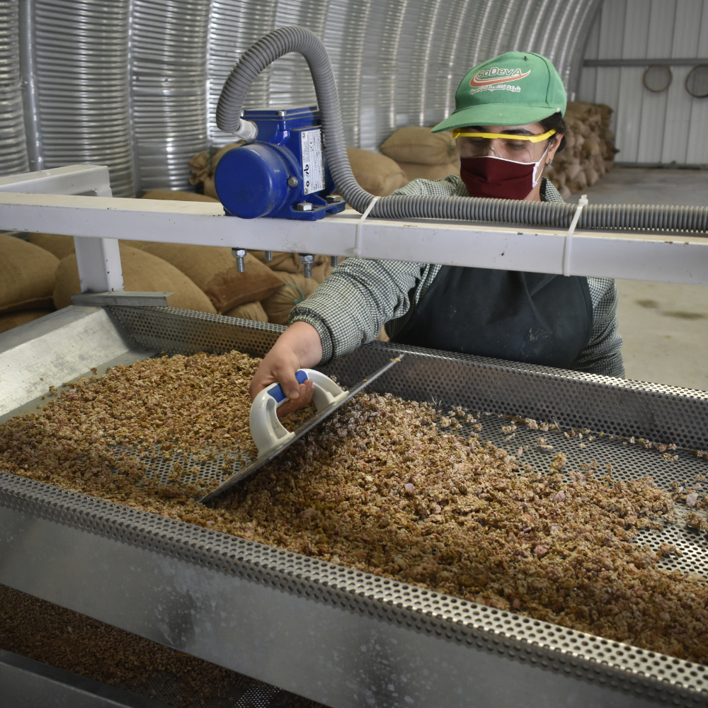 Harvesting requires time and precision. After picking, the fruits are carefully processed to isolate the seeds, which are then cleaned and prepared before extraction. The oil is then obtained by mechanical cold pressing, a demanding method that aims to preserve the quality of the material and the integrity of its natural components. Nothing is ‘forced’: no solvents, no shortcuts, just a controlled process that respects the oil and what makes it so sensorial when it comes into contact with the skin.